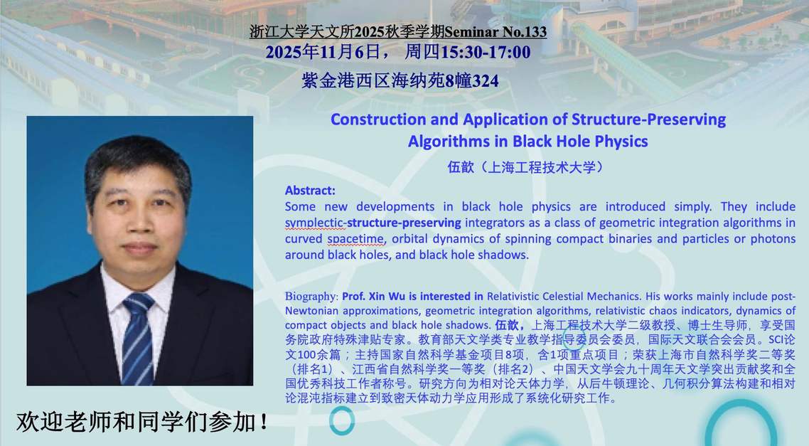 浙江大学天文所2025秋季学期Seminar No.133
