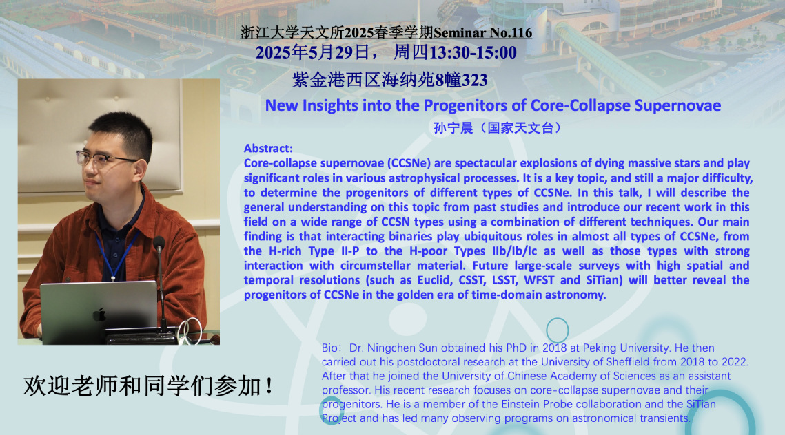 Events Events activity Institute of Astronomy, Zhejiang University Spring Semester 2025 Symposium No.116 source:浙江大学宇宙学和计算天体物理学中心 author: time:2025-06-08 visitor:14