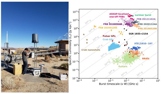 图3: 快速射电暴(FRB)与其它射电瞬变源的光谱光度图
