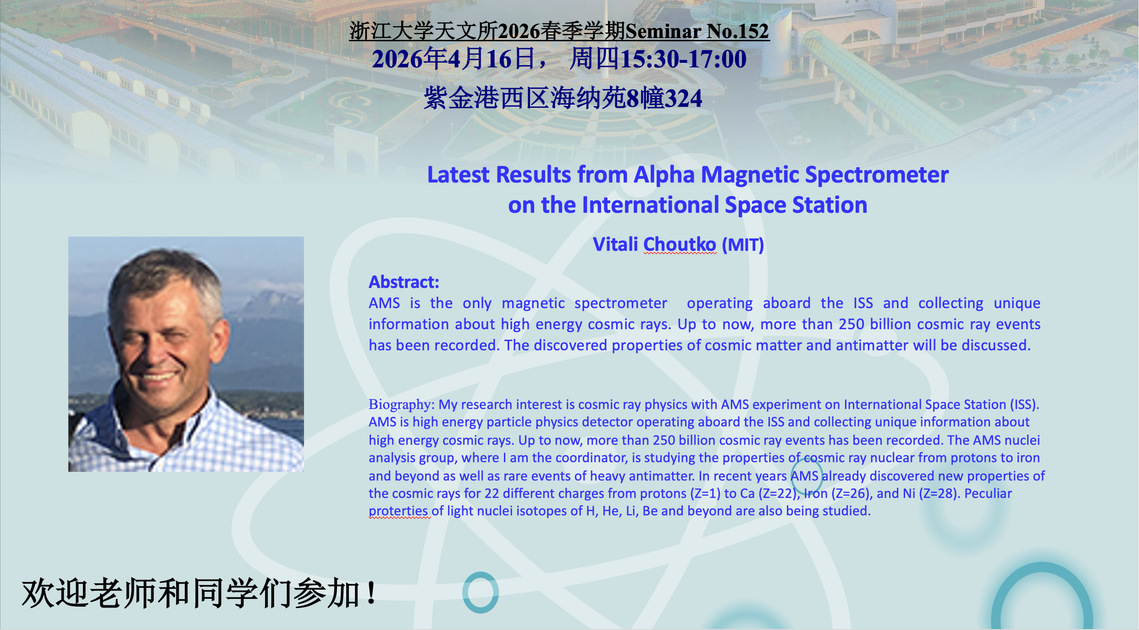 Institute of Astronomy, Zhejiang University spring Semester 2026 Symposium No.152