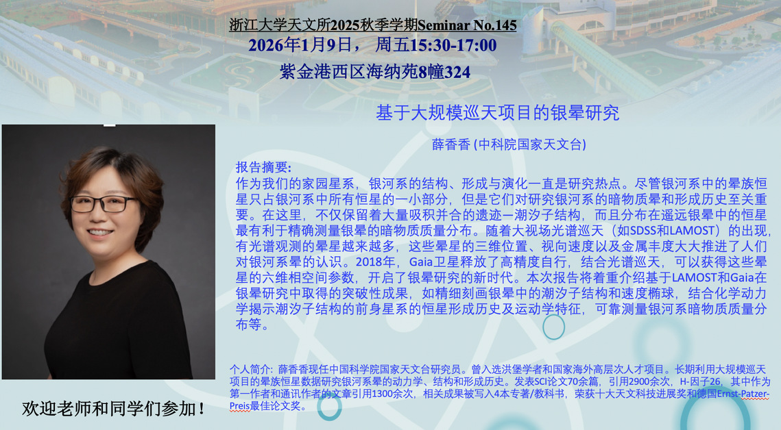 Institute of Astronomy, Zhejiang University autumn Semester 2025 Symposium No.145Time:Address:Speaker: -